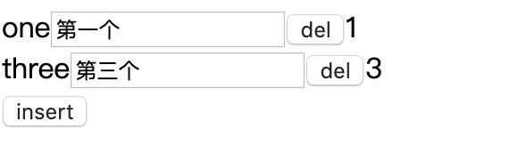 首先将key绑定为下标索引值。渲染出来是没有毛病的,但是前面我们看到key作用的时间是在diff的时候,当数据发生变化的时候,vnode节点树就会重新生成,之后通过diff找到修改的地方,然后把修改的地方通过dom方法修改(diff算法可以看看vue源码或者snabbdom,二者都采用了双端比较的算法,此处不讨论过多细节),所以,可以先可以在input里输入一些文字,这些文字是存在组件内部state的,然后,点击第二个Chlld的删除,此时却发现,只有外部的info显示更新了,而input里面的文字竟然没有更新